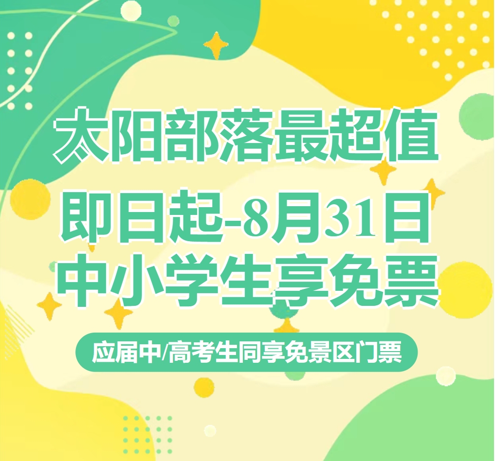萬(wàn)眾一心,共筑美好,家園同慶,共享和平! 隨著9.3的結(jié)束,即將迎來(lái)和平日! 就在9月11日當(dāng)天 太陽(yáng)部落景區(qū)開(kāi)啟 “守護(hù)和平,愛(ài)筑未來(lái)”活動(dòng) 僅需1元即可購(gòu)買(mǎi)太陽(yáng)部落景區(qū)門(mén)票 再送動(dòng)物歡樂(lè)王國(guó) 搶購(gòu)僅9月11日至12日兩天 數(shù)量有限先到先得 “守護(hù)和平,愛(ài)筑未來(lái)” 太陽(yáng)部落景區(qū)“門(mén)票一元購(gòu)” 售賣(mài)時(shí)間:2024年9月11日-9月12日 使用時(shí)間:2024年9月13日-9月21日 搶購(gòu)方式: 關(guān)注太陽(yáng)部落景抖音官方賬號(hào)“太陽(yáng)部落景區(qū)” 快手官方賬號(hào)“泰安太陽(yáng)部落景區(qū)” 或保存下方二維碼至抖音/快手掃一掃關(guān)...